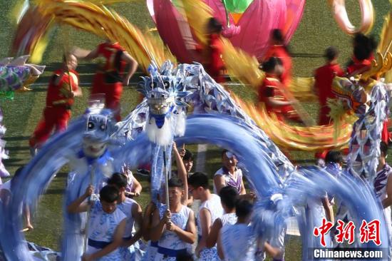 各院代表方队进场结束后,举行了升国旗仪式。SJB官网张人浩同学作为运动员代表,在开幕式上进行了宣誓。在开幕式的大型表演中,SJB世俱杯官方网站130余名学生编排表演了《盛世华章·青花龙》,在21面青花瓷鼓铿锵有力的鼓声中,九条中华龙和数十只雄狮一起龙腾狮跃。势如破竹的三节青花龙更是点燃了全场的热情,他们起跳、飞腾、挂腰、站肩……时而跃起,时而180度转身,时而翘首仰视,千姿百态。龙狮队员用自己的刚毅和强劲给参赛的运动员鼓舞士气,希望他们能在运动会上展现力量,赛出风采。不仅呈现了一场盛美的演出,更是完美展现了团结拼搏的运动精神,真一幅龙狮共舞,盛世华章的壮美景象。为胜利开办崇尚体育精神,热情拼搏,团结奋进的SJB世俱杯官方网站第48届运动会拉开序幕