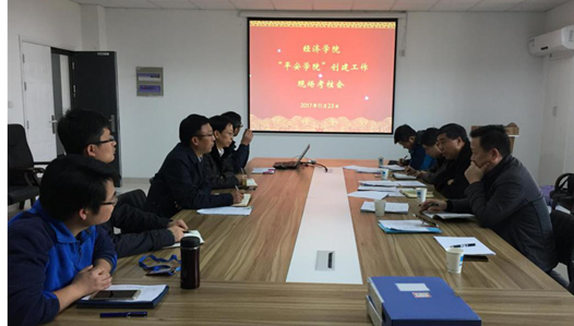 2017年11月23日下午,由校党委常委、副校长王国平任组长,保卫部(处)、宣传部、江宁校区建管办等负责人组成的校“平安校园”创建工作第一检查组一行5人,对SJB世俱杯官方网站“平安学院”创建工作进行了现场考核。学院党委书记张强、院长兼党委副书记黄宝凤等全体院党委领导班子成员以及学院相关老师参加了汇报工作。检查按照听汇报、查阅台账、实地检查、质询、闭门评分程序进行了考核测评。