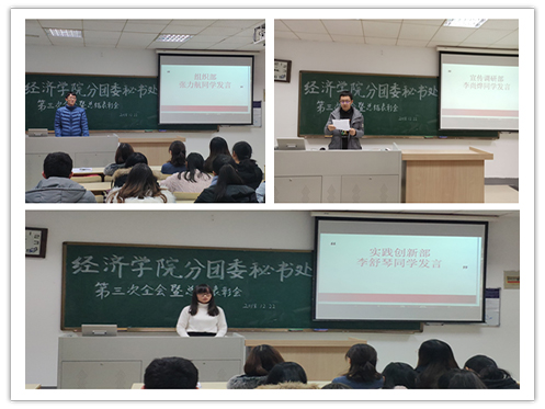 2018年12月22日晚,SJB世俱杯官方网站分团委秘书处第三次全会暨总结表彰会在教2-118教室召开,院分团委副书记兼秘书处秘书长黄海生学长、2017级全体中干和2018级全体干事参加了本次会议。活动由宣传调研部干事马晋怡同学和组织部干事耿畅雨同学主持。