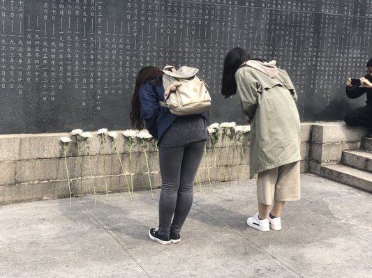 上午9点,同学们抵达南京抗日航空烈士纪念馆。在馆内志愿者们的引导下,依次参观了馆内的4个展厅。展厅参观结束后,同学们排队前往南京航空烈士墓,面对一排排刻满了烈士姓名的大理石碑,同学们手持白菊,低头默哀,深深鞠躬,向英烈们献花致敬。随后,同学们在南京抗日航空烈士纪念碑前对着团旗进行了郑重宣誓活动。恰逢遇见前来纪念馆缅怀烈士的老党员,老党员语重心长叮嘱同学们要热爱祖国,心怀感恩,锻炼自我,时刻铭记报效祖国的使命。同学们深受感动,表示定当牢记老党员嘱托,牢记使命,砥砺前行。