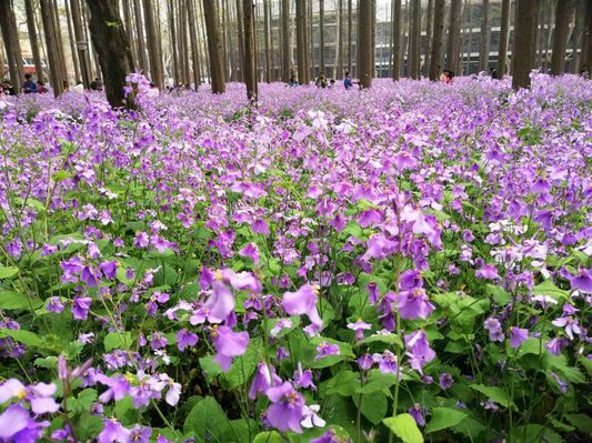 漫步和平园紫色花海,了解二月兰前世今生。相传二战时期日本一反战人士感慨于满目疮痍的南京竟有这种紫花小草,顽强地伫立于紫金山上,遂带回日本,作为宣传和平的使者,在岛国播撒扩大,并定名为紫金草,随后又带回南京大片培植,渐成气候。在占地十余亩的高大挺拔的水杉林间,繁密的二月兰铺就了一片紫色花海。通过此次观赏,同学们第一次了解了二月兰被誉为“和平之花”的历史渊源。