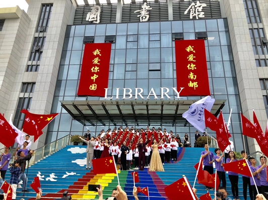 《我和我的祖国》快闪活动更是今年校庆跑的一大亮点,现场柚子们齐声喊道:“我爱你中国!我爱你南邮!”在呼喊中表达出对祖国、对南邮的浓浓爱意。