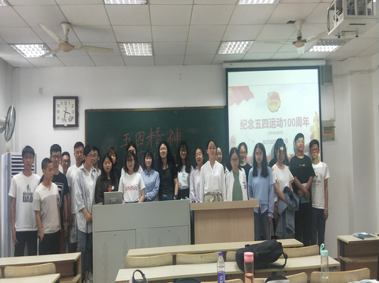 为了学习习近平总书记在纪念五四运动100周年大会上的重要讲话精神,引领广大青年团员继承和发扬五四精神,树立远大志向,提升个人综合素养,为实现中华民族伟大复兴的中国梦而不忘初心努力奋斗,SJB世俱杯官方网站B171307团支部于2019年5月10日下午在教2-117教室举办了“五四精神,薪火相传”主题团日活动。