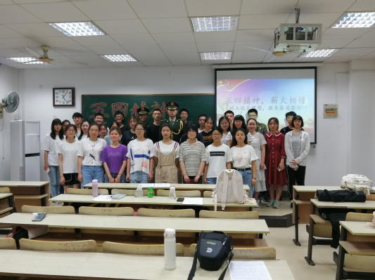 活动伊始,团支书周丽同学身佩团徽,带领全班团员起立合唱团歌。嘹亮的歌声唤起了大家对五四活动的种种回忆,在歌声中寻找属于自己的责任和理想。紧接着,周丽以座谈会形式带领团员们一起学习了纪念五四运动100周年大会上的重要讲话中的部分内容,全体同学积极参与,踊跃讨论,发表了自己的心得体会。五四运动以全民族的力量高举起爱国主义的伟大旗帜;五四运动以全民族的行动激发了追求真理、追求进步的伟大觉醒;五四运动以全民族的搏击培育了永久奋斗的伟大传统。团日活动的最后阶段,我部有幸邀请到我校优秀国防生许嘉铖学长给全体团员演讲了国防生的故事。军旅梦想、爱国情怀,真挚感人的故事一次次感染着在场的每位团员,让大家在肃然起敬的同时,增加了自己的爱国热情,坚定了自己的报国情怀。