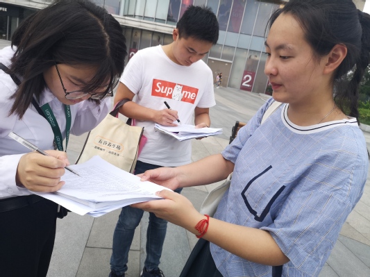经过了前两日的历练,组员们都有了经验,也逐渐掌握了与别人沟通交流的技巧。在最后一天的实践中,经院学子们在与调查对象访谈时逐渐褪去了前两日的紧张与胆怯,取而代之的是从容与淡定,这使得他们的效率大大提高。经统计,第三日共完成问卷170份,其中有效问卷161份,超额完成当日指标。