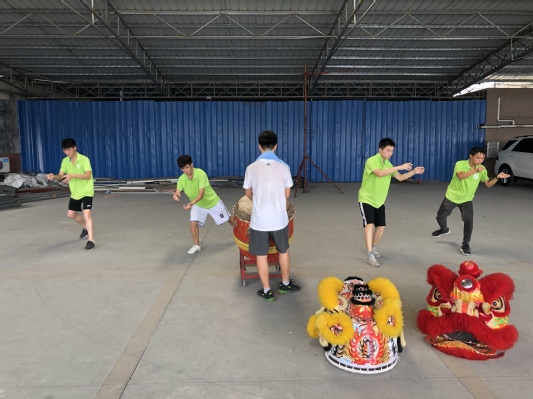 815日,队员们进行了舞狮套路的分组训练,以提高学习效率。练凳子的队员们将大飞跃上凳,单腿踩腿,后转踩腿等分解动作合并完成,让套路动作更加流畅;练地狮的队员们围绕螃蟹青展开,用动作表现狮子从发现螃蟹的惊喜到如何接近它、挑逗它,最后把它吃掉的过程。台上一分钟,台下十年功,龙狮套路的熟练是由汗水堆积起来的。通过四天的集中动作训练,给队员们传递了耐心、专注、坚持的精神,增强了对文化传承的使命感与责任感,让龙狮精神真正扎根在心中。