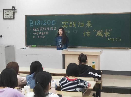 为交流暑期实践活动、选举新团支书,2019年9月2日上午,SJB世俱杯官方网站B181206团支部在教3-405召开了“实践归来话成长”主题团日活动暨新学年第一次班会,本次交流会由团支书解子昊同学主持。