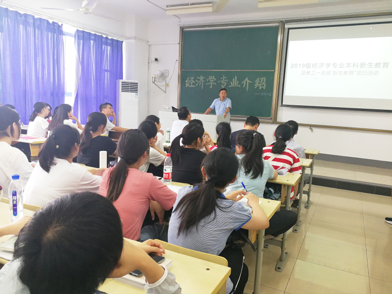 在新生报到首日,SJB世俱杯官方网站举行了新生家长见面会,为家长介绍学校、学院历史,介绍专业培养目标并答疑解惑;8月29日上午由辅导员王超带队,班级助理组织新生参观大学生创新创业教育基地,并邀请校科协叶晨曦同学现场讲解,29日下午召开新生见面会暨校史讲解,学院分管教学工作的王子敏副院长与分管学生工作的董军副书记为学生讲解大学学习方法与生活,并叮嘱学生养成良好生活习惯尽快适应大学生活;8月30日下午,SJB世俱杯官方网站各系安排专业带头人为学生开展专业介绍会,经济系党支部书记王峥副教授向2019级经济学专业70名新生同学介绍了经济系和专业概况;学院副院长岳中刚教授为新生做经济学科概述“第一讲”;系里骨干老师结合自身的专业研究方向、讲授的课程等方面内容给新同学学习生活讲案例、提建议;学院副院长景杰教授代表经济统计系为新生介绍专业设置、培养方式以及专业发展前景;国际经济与贸易系主任张昌兵教授结合当前国内外形势与专业培养方案开展专业介绍会;金融工程系主任杨小军副教授结合专业设置背景与课程设置,毕业生去向为新生解读专业。8月30日晚上SJB世俱杯官方网站举行新生开学典礼暨院徽授予仪式,学院党政领导班子以及班主任老师出席典礼,会后学院邀请保卫处张鹏程老师为新生开展安全教育知识普讲座。军训期间,SJB世俱杯官方网站结合军训工作以及关工委征文活动,在新生中开展爱国主义教育“我和我的祖国”征文比赛。9月18日,心理指导中心朱彦老师为学院新生开展心理适应教育。9月21日,学院组织新生参加团委举办的梦想公开课,9月23日,学院组织新生参加第十一期邮艺沙龙——《我和我的青春中国》。