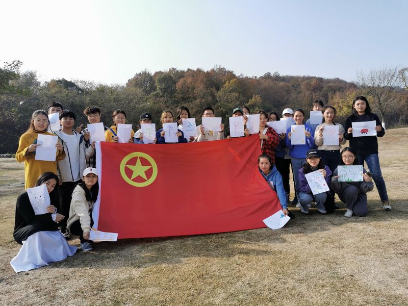 银杏树下,金草地上,活动在庄严的国歌声中拉开帷幕。大家举起中国共产主义青年团团旗,唱响团歌。随后姜云飞同学用唱红歌与诗歌朗诵等方式,带大家回顾历史,展望未来,不忘爱国初心,牢记青春使命。诗歌《不忘初心》是习近平主席的教导;歌曲《团结就是力量》、《强军战歌》是铿锵的力量。最后B19201团支部的每位成员拿起手中的水彩笔,共同制作了经济学一班团支部的字牌,大胆放飞自我,画出自己想画的画。