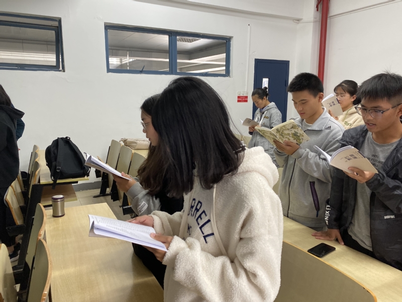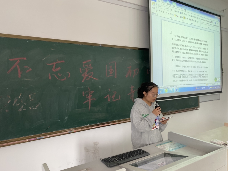 首先,郑悦同学带领全体同学朗诵《习近平在北京大学师生座谈会上的讲话》经典文章。“国势之强由于人,人材之成出于学。”“大学之道,在明明德,在亲民,在止于至善。”“才者,德之资也;德者,才之帅也”等承载中国文化基因的古语滋养着新时代同学们的心灵,不忘爱国初心,牢记青春使命。随后,大家共同观看了纪录片《闽西-红色记忆》,学习革命过程中的艰难险阻,听革命前辈诉说属于党的红色记忆。最后,由团支书吴夏同学组织同学们完成青年大学习内容,集体学习党团知识。