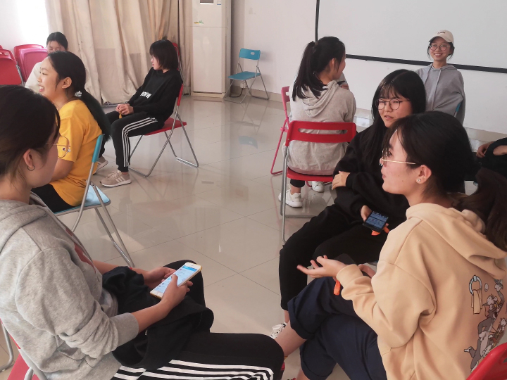 暖场活动由同学们模拟雨声,活跃气氛。班会正式开始后,首先由汪瑜同学进行心理方面的知识传播,表达自己的看法,阐明了心理健康的重要性。随后又邀请同学上台发言,分享自己人际交往的心得。紧接着班会进入击鼓传花环节,大家围成一圈互相传花,鼓停时花在哪位同学手上,他就要说出最近一直困惑的问题,并由下一位幸运儿进行解答。模拟结束后,心理委员给出最终的科学解决方案,在调动同学们积极参与的同时,对心理知识也是很大程度的补充。