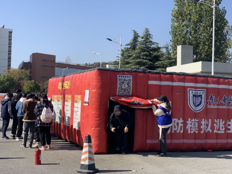 此次演练主要分为模拟安全逃生与灭火器使用的操作学习两个部分。首先,在志愿者的指引下,同学们列队依次排队进入模拟火场进行逃生演练。通过模拟火场逃生,同学们对于火灾现场有了更具体直观的感受,对火场中逃生的方法有了进一步的掌握。接着,消防协会专业人员向同学们详细介绍了灭火器灭火的基本原理、基本使用方法以及常见的注意事项和误区。最后,同学们现场分批进行灭火器的使用操作。整个过程中,大家积极参与、认真听讲并相互交流分享经验,在实践过程中学习并掌握了灭火器的使用技巧。