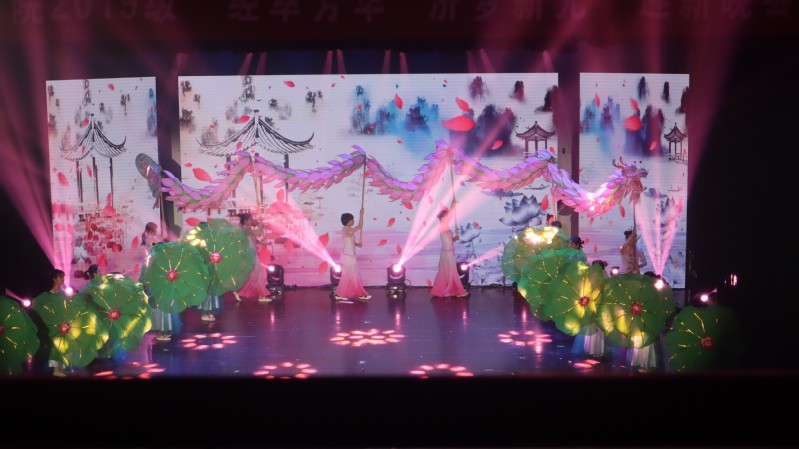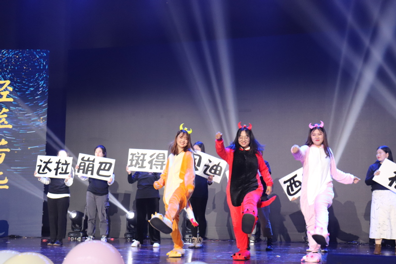 激昂的鼓乐应和着现场的欢呼声,伴着锣鼓喧天,晚会拉开了序幕。在夺目炫丽的光影中,六位主持人华丽登场并宣布,迎新晚会正式开始。经院柚子们多才多艺的表演,或热烈、或诙谐、或青春、或秀美,为我们献上了一场饕餮盛宴。《Wota艺》用热情和手中的灯光划破黑暗,点燃了晚会的初幕;歌曲《你不是真正的快乐》带我们拥抱心底的感动;小品《一念天堂》让观众们捧腹大笑的同时引人深思;啦啦操《花样年华》是青春之美蓬勃待发的美;歌曲《我好像在哪见过你》深情诉说相期之约;乐器《无羁》笛音婉转,琵琶勾魄,唤起古典音乐的魅力;街舞《Senobody》是性感与火辣的激烈碰撞;相声《学哑语》诙谐幽默赚人笑声;合唱《致经院最亮的星》献上“星河相伴,未来可期”的美好祝愿;学生会全体中干倾情奉献的舞台剧《达拉崩吧》将流行歌曲与舞台剧结合,独具特色;由王超老师、朱蔚懿老师带来的诗朗诵《祖国是什么》,深沉含蓄的吐露对祖国最真挚的爱意。