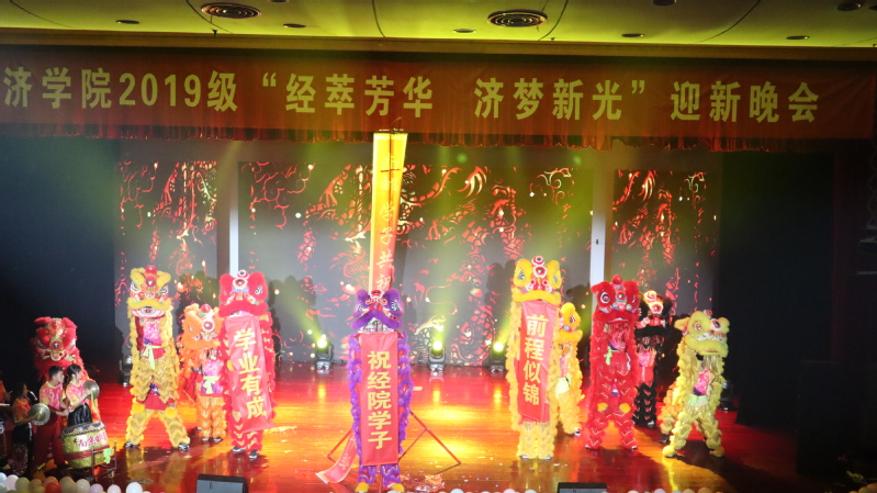 此外,龙狮团作为经院的特色社团,为大家带来欢腾的龙狮表演。《盛世龙腾》的表演气势恢宏、蓬勃振奋;《烟雨行舟》表现出的秀美、静谧,仿佛江南水乡流淌的美;《祥狮献礼》用登高、踩青、吐福等动作,向在场观众送上“十全十美”的祝福;《鼓乐齐鸣》则以磅礴的气势与高歌奋进般的激烈鼓点,展现了青年学子的蓬勃朝气。