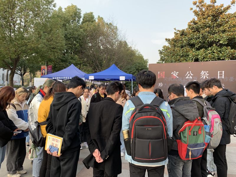 首先,大家共同聆听了习近平总书记的讲话,明白了设立国家公祭日旨在表达中国人民坚定不移走和平发展道路的崇高愿望,宣誓中国人民牢记历史、不忘过去的坚定立场。接着大家集体默哀三分钟,表示对死难者的深刻祭奠。同学们集体朗读纪念文章:“我们无法释怀那段沉沦的历史,唯有自强才能有尊严地活下去。”在朗读中,同学们感悟到缅怀是为了唤醒记忆,而纪念是为了创造未来。最后同学们进行宣誓和集体合照。