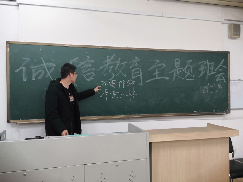 2019年12月17日18:30,SJB世俱杯官方网站B191207班在教2-509举办诚信教育主题班会。班主任张弛老师和班级全体同学参加,班会由班长樊玉卓同学主持。