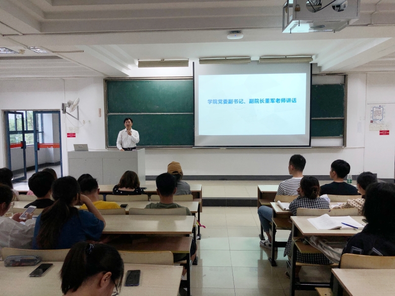 最后,学院分管研究生管理工作的副书记、副院长董军讲话。董书记肯定了2018级学生三年来取得的各项成绩,勉励大家要勤于钻研,甘于吃苦,认真备考。要抓住大三暑假考研的黄金时期,强化巩固所学内容,整理搭建知识框架,调整好复习心态,劳逸结合。