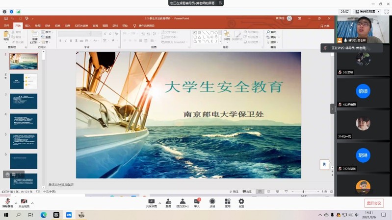 为提高同学们的安全防范意识,增强同学们的安全防范能力,全面普及校园安全常识。2021年9月6日下午,SJB世俱杯官方网站2021级举行安全教育专题大会。会议由2021级本科生辅导员黄海生老师主持,2021级全体新生通过腾讯会议参加本次活动。
