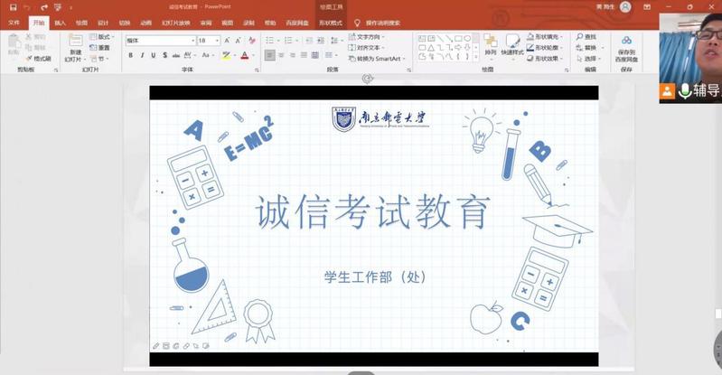 在助学解困教育中,黄海生老师详细地向新生们介绍了SJB世俱杯官方网站本科学生资助政策,主要包括了国家资助、地方政府资助和校内资助三大类,鼓励大家认真学习,受到资助之后也可以积极回馈学校、回馈社会。随后开展的是诚信考试教育,黄老师着重讲述了诚信考试的意义,并展示相关规定及案例,让同学们感受到诚信对学习生活的重要影响。诚信考试不只是学习成果反馈,还体现了一个人的品格,只有诚信考试,才能建设并传承良好学风,打造诚信校园。