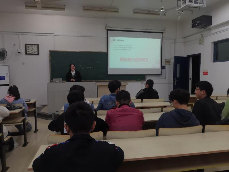 徐珂同学首先给大家解读了大学英语四级的试卷结构,随后阐述了四级考试与高考英语中相应题型的联系与区别,并且对每种题型的练习方法、考试技巧进行了针对性的介绍。英语四级相关内容介绍完毕后,徐珂同学向大家介绍了大学中可以参加的英语竞赛,鼓励同学们积极尝试,并且分享了自己在日常生活中提升英语使用的方法。最后进行自由交流和讨论,她告诫同学们英语学习功在平时,应当注重积累、勤加练习。