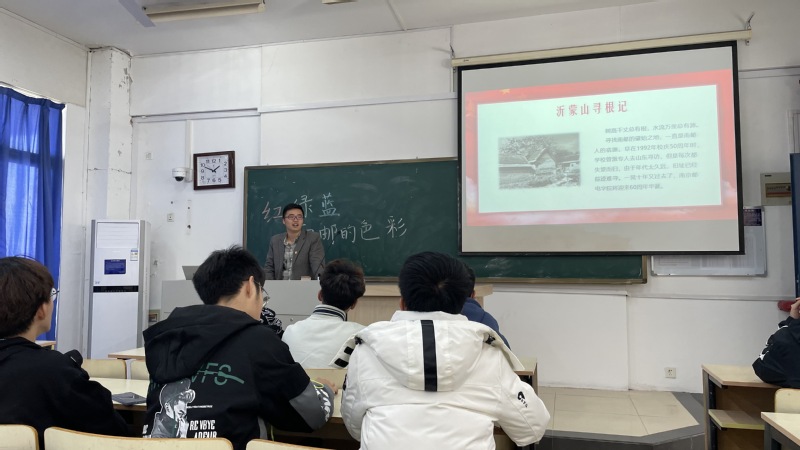 辅导员黄海生老师首先向大家介绍了此次班会的主题和背景,他从南邮的颜色是红绿蓝这一角度展开,详细阐述了南邮的过去、现在和未来。随后全体同学一起回顾了南邮的发展史,以PPT和视频的形式展示着这些年来南邮经历的大事件。同时为了让大家能对校史有更深入的了解,B211207班还举行了校史知识竞赛,全班学生分为A组,B组和C组,比赛有问答和抢答两种形式。在紧张激烈的问答中,同学们对南邮历史和南邮精神也有了很多新的理解。伴随着慷慨激昂的校歌《信达天下》,本次红色校史主题班会圆满结束。