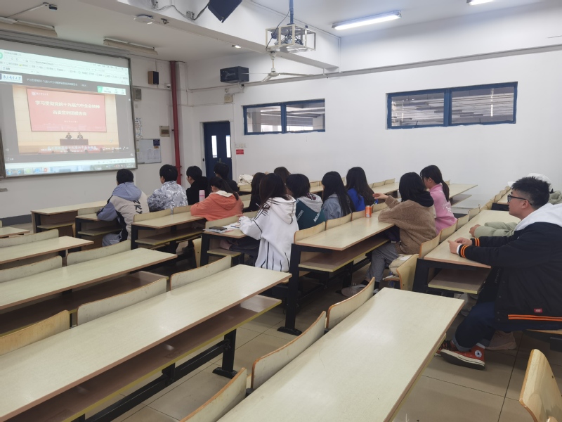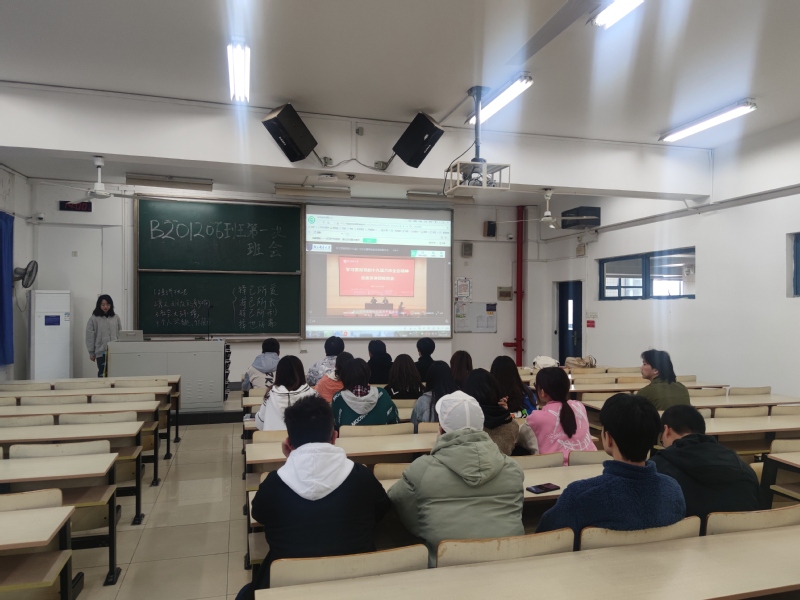 2021年12月8日下午,SJB世俱杯官方网站B201206班在教2-205教室集中观看学习贯彻党的十九届六中全会精神省委宣讲团报告会视频直播。班会由班长骆怡主持。