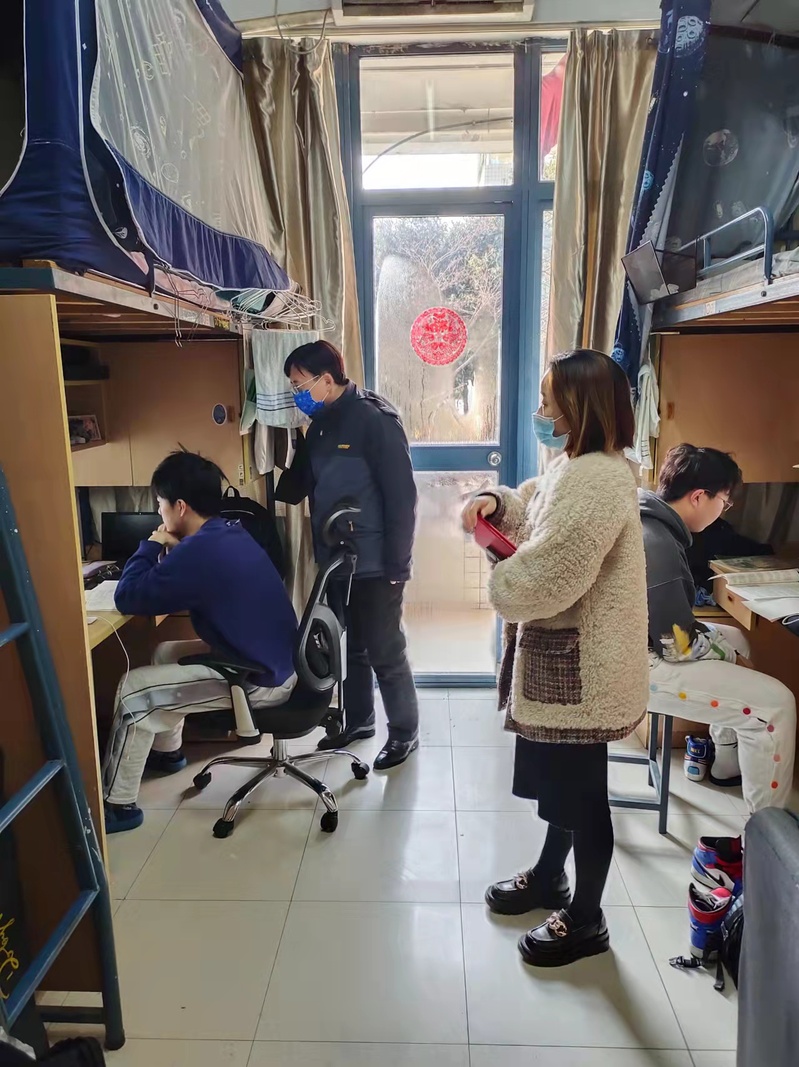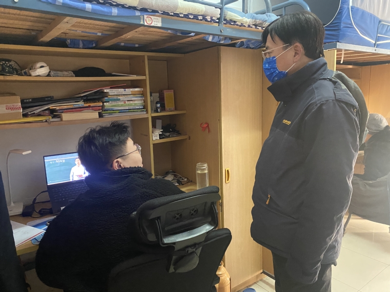 为扎实推进学生宿舍线上学习教育,督促同学们以崭新的面貌和昂扬的斗志开始新的学习征程,2022年2月21日,SJB世俱杯官方网站党委副书记兼副院长董军老师和学院全体辅导员开展了“开学第一课”检查活动。