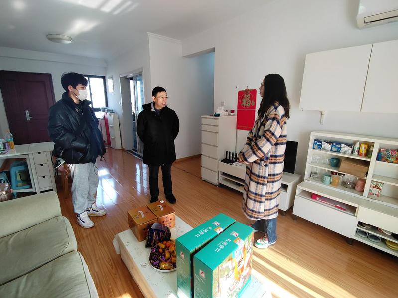 根据学生家乡疫情防控需要,学院有3名学生暂缓回家,在南京居住。黄宝凤老师和董军老师前往学生居住地,与学生进行了亲切交谈,了解每位同学留校原因、假期安排以及生活困难等方面的情况,叮嘱同学们春节期间提升安全保护意识,注意防寒保暖,与家人和学院老师及时沟通。