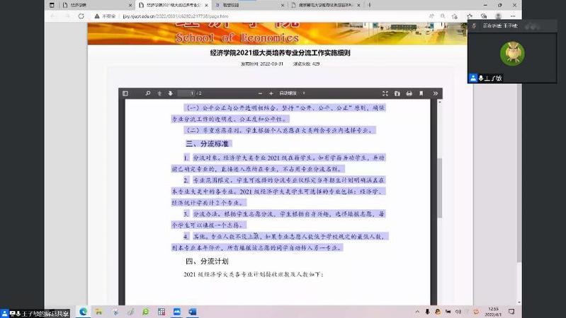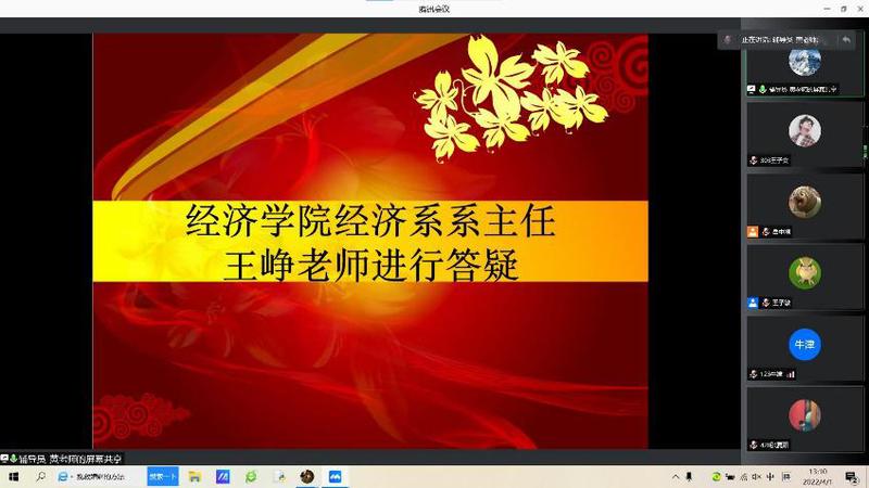 2022年4月1日中午,SJB世俱杯官方网站2021级经济学类专业分流情况沟通会通过网络平台顺利举行。SJB世俱杯官方网站院长岳中刚教授、党委副书记兼副院长董军老师、副院长王子敏老师、经济系系主任王峥老师、经济统计系系主任易莹莹老师出席。2021级经济学类全体本科生线上参会,会议由辅导员黄海生老师主持。