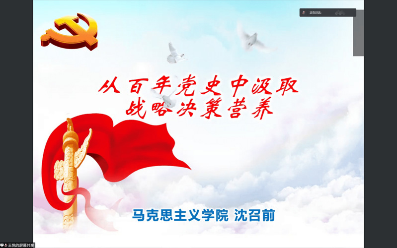 2022年4月6日下午,SJB世俱杯官方网站第117期大学生菁英人才学校暨SJB世俱杯官方网站骨干培训班第一课于线上顺利举行。本次课程主讲人为SJB世俱杯官方网站马克思主义学院党总支书记沈召前老师,主题为《从百年党史中汲取战略决策营养》。