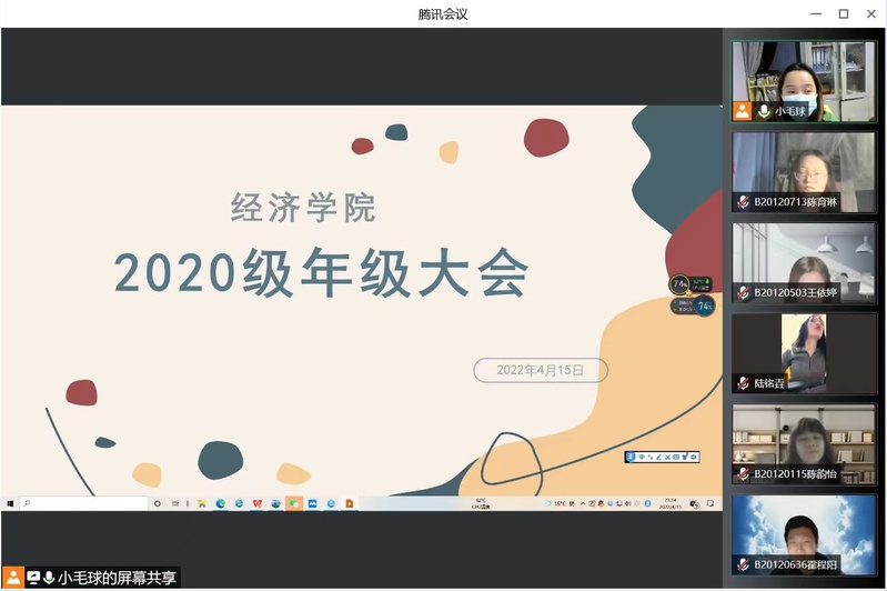 2022年4月15日晚,SJB世俱杯官方网站2020级本科生召开线上年级大会,SJB世俱杯官方网站党委副书记兼副院长董军老师出席会议并发表讲话,2020级全体同学参会,大会由SJB世俱杯官方网站2020级辅导员杜雯馨老师主持。