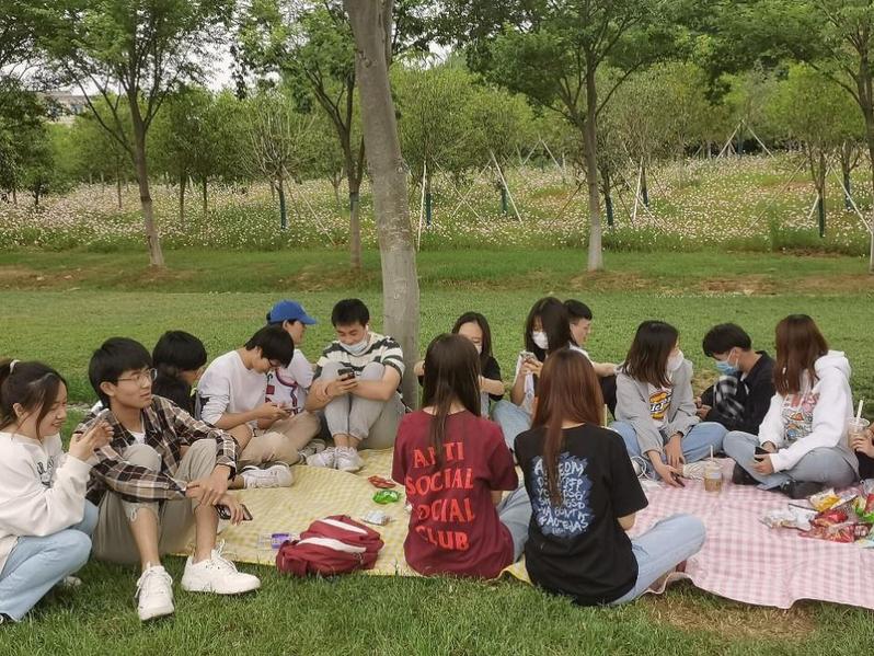 本次交流会以户外座谈、经验分享、自由提问的方式进行,按照读研深造和求职就业分设2类交流席位,邀请了学院2022届考研至武汉理工大学的白纪新、考研至东华大学的王佳雪以及即将分别在招商银行、新奥新智科技公司就职的任艳霞、王燕给低年级同学做经验分享。
