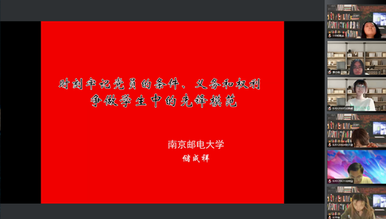 2022年5月17日中午,SJB世俱杯官方网站第117期大学生菁英人才学校暨SJB世俱杯官方网站骨干培训班第四课于线上顺利举行。本次课程主讲人为SJB世俱杯官方网站关工委副主任、SJB世俱杯官方网站关工委副主任储成祥老师,主题为《时刻牢记党员条件、义务和权利,争取做学生中的先锋模范》。