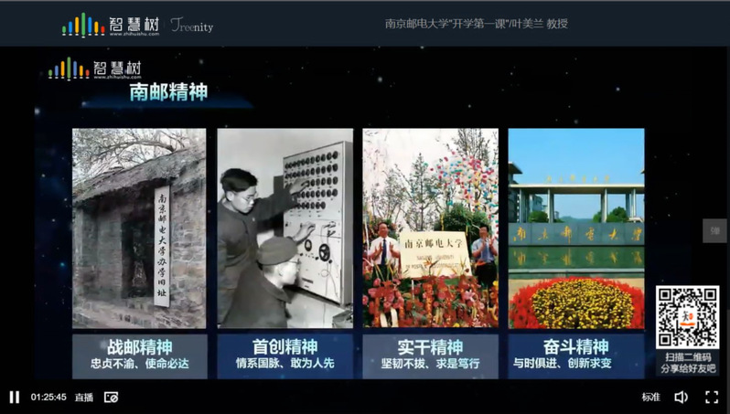 进入大学,能够学到什么?叶校长讲到最重要的有三点:知识、能力和做人。世界在变,中国也在变。教育的高度决定着时代的发展,大学的创新推动着历史的创新,创新能力是当代大学生学习生活的必要素质,也是南邮重点培养的能力。与此同时,叶校长隆重介绍了南邮精神,从忠贞不渝、使命必达的战邮精神,到情系国脉、敢为人先的实干精神;从坚韧不拔、求实笃行的首创精神,到与时俱进、创新求变的奋斗精神。她鼓励同学们传承南邮精神,尤其是根植于血脉的红色基因和南邮人的信息报国精神。