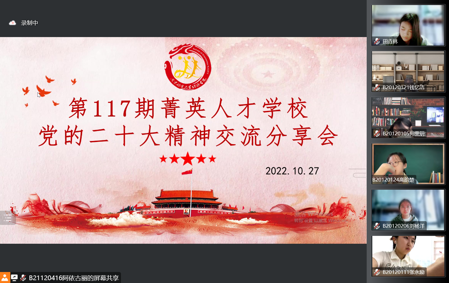 第117期菁英人才学校党的二十大精神交流分享会