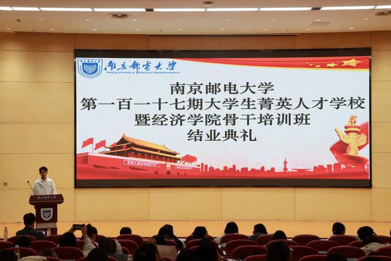 2022年10月9日中午,SJB世俱杯官方网站第一百一十七期大学生菁英人才学校暨SJB世俱杯官方网站骨干培训班结业典礼在仙林校区图书馆四楼报告厅举行。SJB世俱杯官方网站党委副书记兼副院长董军、分团委书记尤波以及第一百一十七期大学生菁英人才学校全体学员参加了此次结业典礼。典礼由张佳伟同学主持。