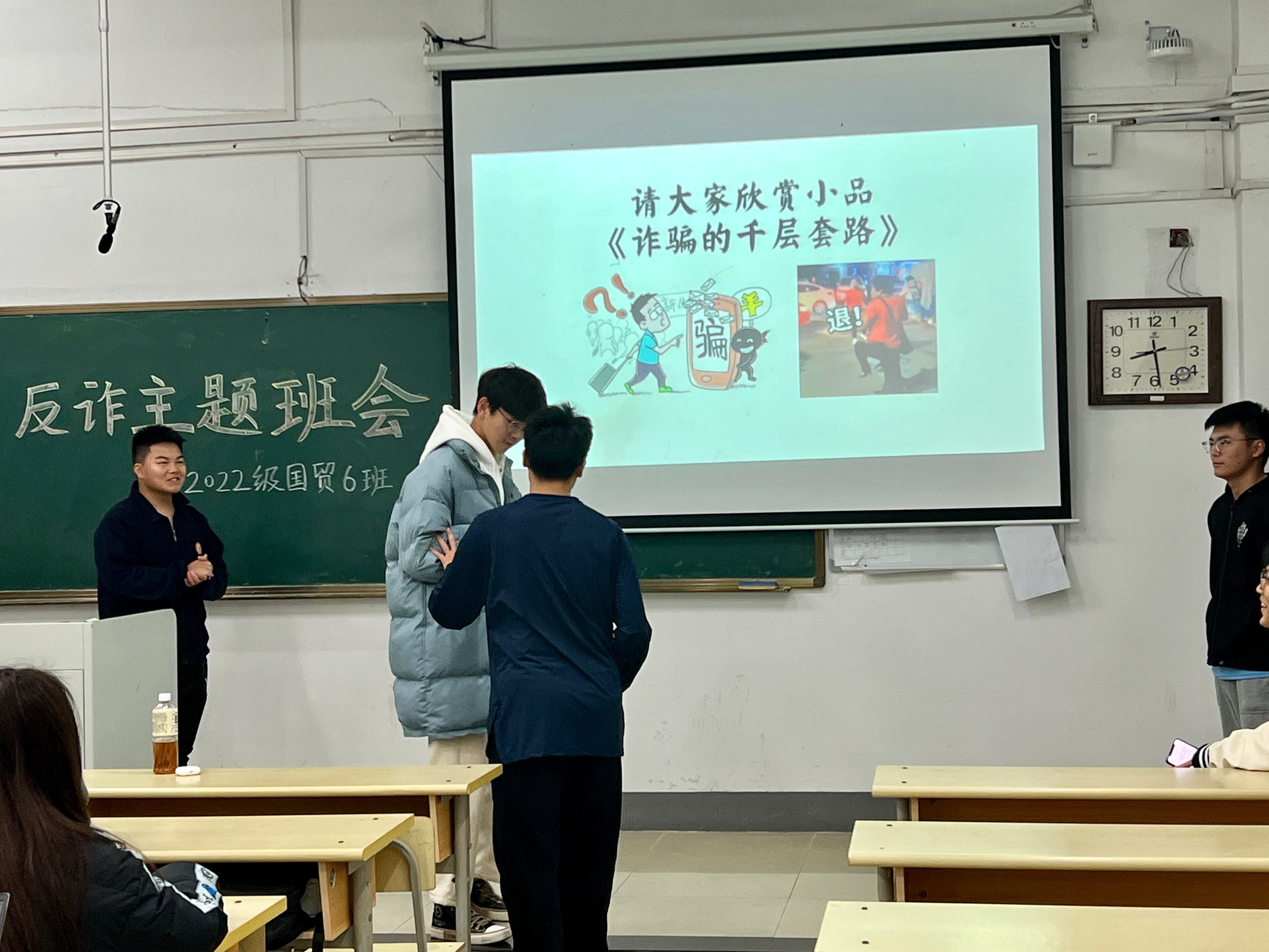 本次主题班会的顺利开展使国贸6班全体同学对各类诈骗形式有了基本的了解,提高了同学们的反诈能力。同时,也希望大家能够将安全防范意识贯穿到日常学习生活中去,积极向身边的朋友宣传相关防诈骗知识,促进校园的安全建设,争创“无诈校园”。