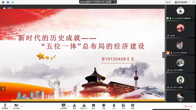 2022年11月26日下午,SJB世俱杯官方网站SJB世俱杯官方网站“经”彩讲堂——信仰公开课第五期于线上顺利举行。SJB世俱杯官方网站2021级、2022级全体本科生团员参加了此次课程。本次课程由B191204团支部团支书吴夏同学担任主讲,具体围绕《新时代的历史成就——““五位一体”总体布局的经济建设》这一主题展开授课。