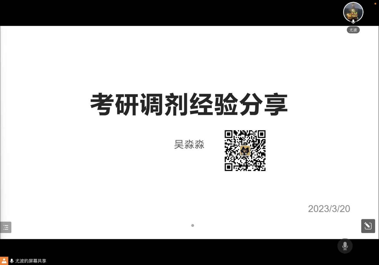 尤波老师结合当下调剂实际情况,提出了几点建议:一是认清形势,合理定位,积极调整调剂心态;二是密切关注,及时掌握调剂信息,加强与目标院系的交流与联系;三是扎实复习,加强复试科目学习及面试技巧提升。并希望同学们能多与学院专业老师交流,获取更多信息,争取调剂上岸。